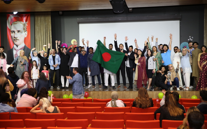 Geleneksel kıyafetler giyen öğrenciler kültürlerini, ülkelerinin tarihini, yaptıkları sunumlar ve diğer performanslarla anlattı.