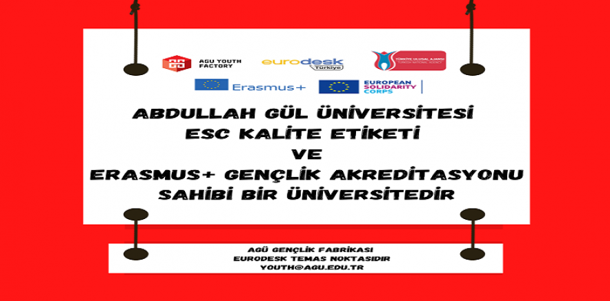 Abdullah Gül Üniversitesi’nin (AGÜ) gençlere yönelik faaliyetler yürüten Gençlik Fabrikası birimi Avrupa Dayanışma Programı tarafından verilen “Gençlik Programı Gönüllülük Faaliyeti Kalite Sertifikası (ESC50)” kapsamında 3 ayrı sertifika almaya hak kazandı.
