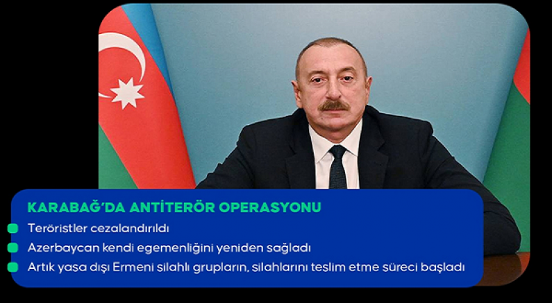 İlham Aliyev, operasyonun durması için Ermeni güçlerin silah bırakması, silahsızlanması ve Azerbaycan topraklarından çıkması şartını koyduklarını hatırlatarak şöyle devam etti: