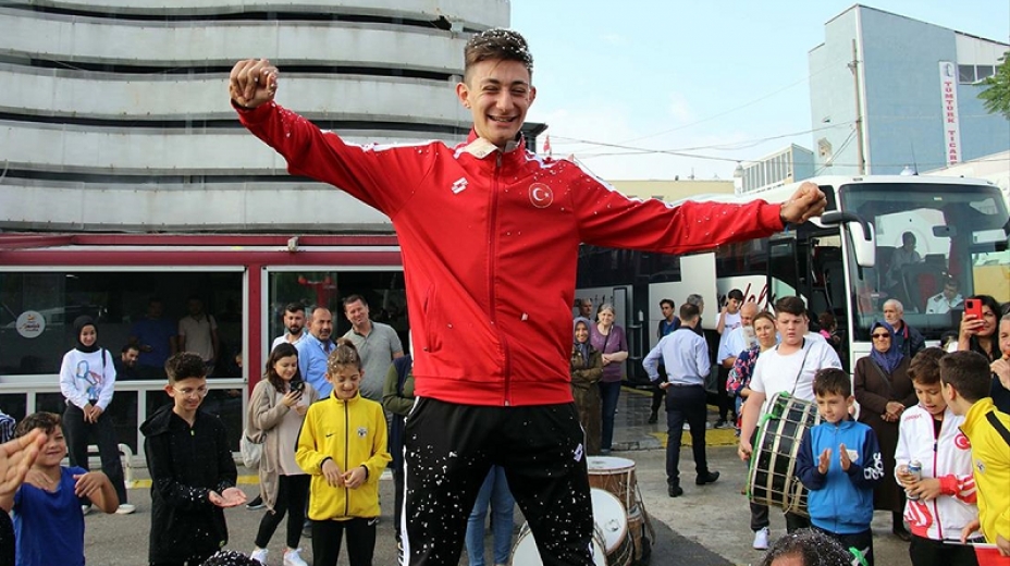Avrupa şampiyonu karateci Süleyman Aydemir, Uşak'ta davul zurnayla karşılandı