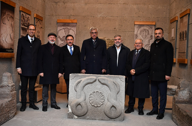 Bakan Memişoğlu ve beraberindeki heyete, Selçuklu Uygarlığı ve Gevher Nesibe Tıp Tarihi Müzesi ziyaretinde Başkan Büyükkılıç’ın yanı sıra Kayseri Valisi Gökmen Çiçek, Kocasinan Belediye Başkanı Ahmet Çolakbayrakdar, Kayseri İl Sağlık Müdürü Mehmet Erşan, Kayseri İl Kültür Turizm Müdürü Şükrü Dursun, Büyükşehir Belediyesi Genel Sekreter Yardımcı Ufuk Sekmen ile daire başkanları da yer aldı.
