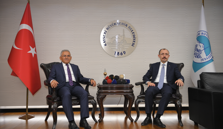 Ticaret Bakanı Mehmet Muş, Kayseri Büyükşehir Belediye Başkanı Dr. Memduh Büyükkılıç’ı makamında ziyaret etti. Başkan Büyükkılıç Kayseri’nin, ticaretin yasalarının yazıldığı 6 bin yıllık şehir olduğunu söylerken, Bakan Muş da Başkan Büyükkılıç’a yaptığı yatırım ve hizmetlerden dolayı tebrik ve teşekkürlerini iletti.
