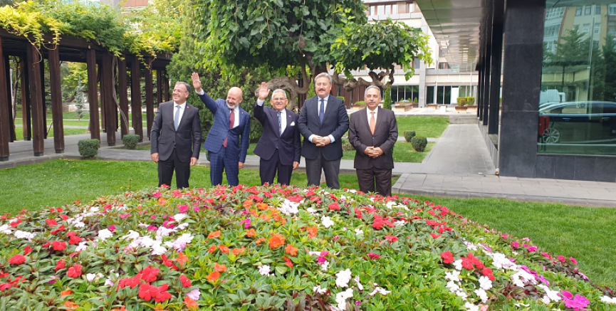 Başkanlar, Büyükşehir Belediyesi bahçesinde bir süre sohbet edip, günün anısına hatıra fotoğrafı da çektirdi.