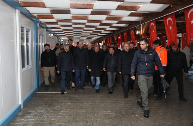Melikgazi Belediye Başkanı Dr. Mustafa Palancıoğlu, İçişleri Bakanı Süleyman Soylu ve Vali Gökmen Çiçek ile Adıyaman'da Melikgazi Belediyesi'nin gece gündüz çalışarak kurduğu Melikgazi Mimarsinan Çarşı'da incelemelerde bulundu.