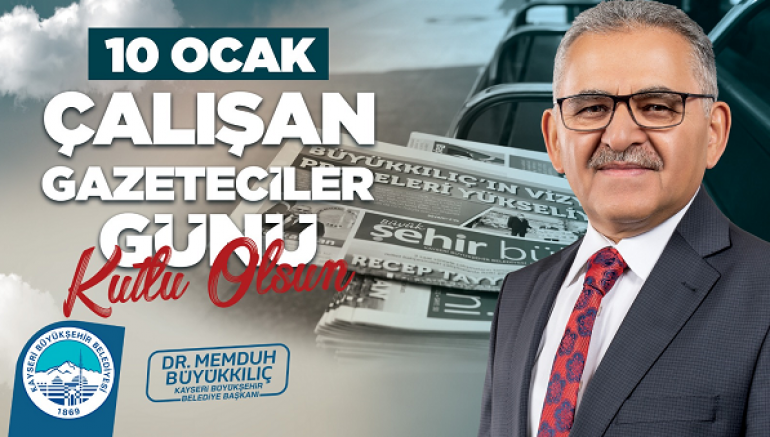 Kayseri Büyükşehir Belediye Başkanı Dr. Memduh Büyükkılıç, 10 Ocak Çalışan Gazeteciler Günü dolayısıyla bir mesaj yayımladı. Başkan Büyükkılıç, vatandaşın gözü, kulağı, sesi olan tüm basın camiasının 10 Ocak Çalışan Gazeteciler Günü’nü tebrik etti.