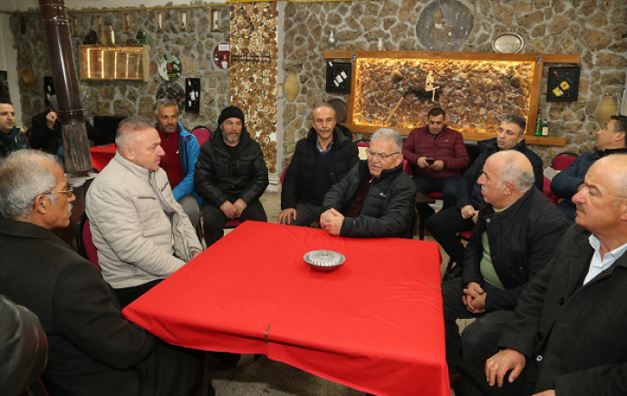 Girdiği bir kahvehanede soba başında vatandaşlarla çay eşliğinde sohbet eden Başkan Büyükkılıç, mahalle sakinlerinin taleplerini bizzat dinledi.