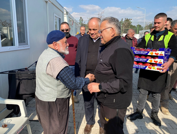 Kayseri Büyükşehir Belediye Başkanı Memduh Büyükkılıç, Büyükşehir Belediyesi Meclis üyeleriyle Kahramanmaraş’ta belediyelerince kurulan konteyner kenti ziyaret etti.