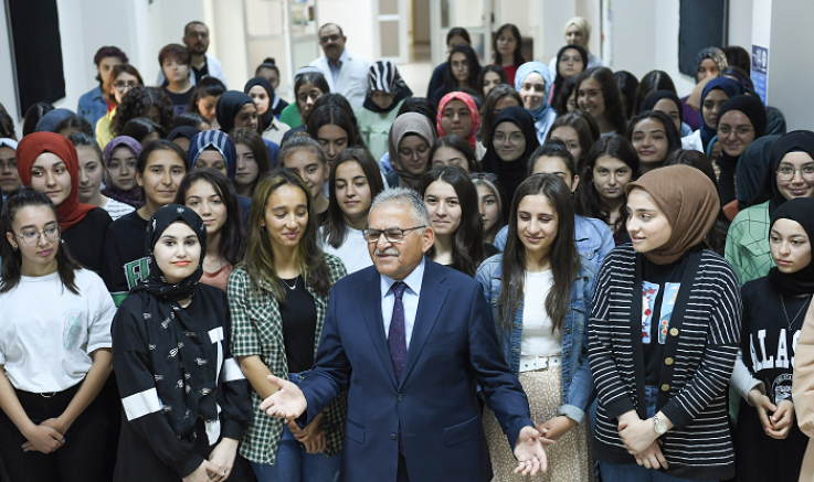 Kayseri Büyükşehir Belediye Başkanı Dr. Memduh Büyükkılıç, Kayseri Meslek Eğitim ve Kültür A.Ş. (KAYMEK)’in yaz kurslarına başlayan öğrencilerini ziyaret ederek, gençlerle sohbet etti.