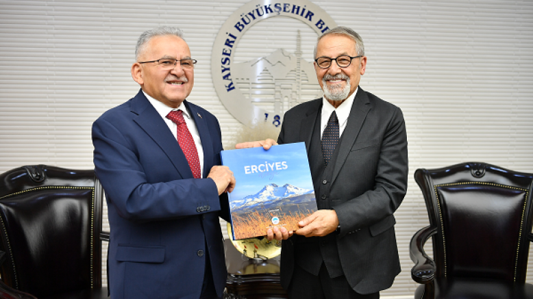 Kayseri Büyükşehir Belediye Başkanı Dr. Memduh Büyükkılıç, Bilim Akademisi Üyesi, Yer Bilimci Prof. Dr. Naci Görür ile Mimar ve Mühendisler Grubu Genel Başkanı Yavuz Sarı ve beraberindeki heyeti makamında ağırladı.