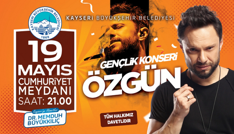 Ayrıca Genç Dostu Büyükşehir Belediyesi, Başkan Büyükkılıç’ın talimatlarıyla 19 Mayıs Atatürk'ü Anma Gençlik ve Spor Bayramı’na özel konser düzenleyecek. Ünlü sanatçı Özgün’ün sahne alacağı ve birbirinden eğlenceli parçaları seslendireceği gençlik konseri, 19 Mayıs Perşembe günü saat 21.00’de başlayacak.