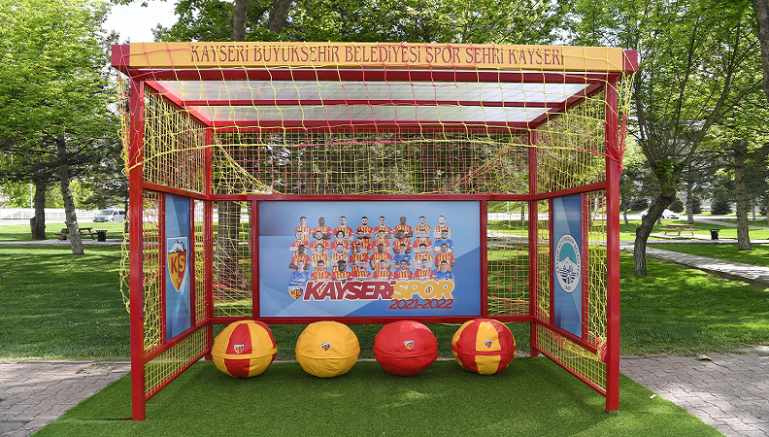 Büyükşehir Belediyesi, Kayseri’ye özgü anlayışlarla hizmetlerine devam ederken diğer yandan Kayseri’nin markası Yukatel Kayserispor için örnek bir davranış sergileyerek, Kayserililere sürpriz yaptı. Bu kapsamda Büyükşehir Belediye Başkanı Dr. Memduh Büyükkılıç’ın talimatıyla Kadir Has Stadyumu’nun önüne Makina İkmal Bakım ve Onarım Daire Başkanlığı tarafından, üzerinde ‘Kayseri Büyükşehir Belediyesi, Spor Şehri Kayseri’ yazılı futbol kalesinden esinlenilen ‘Kayserispor Durağı’ yapıldı. Sarı-Kırmızı renkleriyle, futbol topuna benzer oturma yerleriyle Kayserililerden beğeni toplayan ‘Kayserispor Durağı’ vatandaşlardan tam not aldı.
