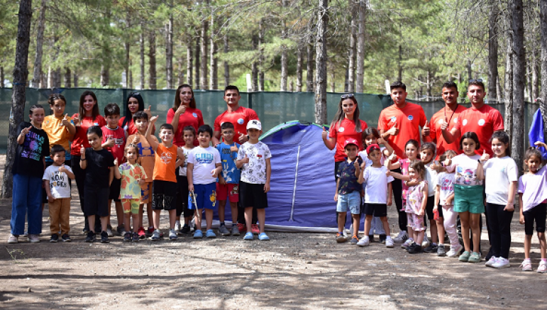 Kayseri Büyükşehir Belediyesi’nin ilgiyle devam eden Doğa Kampı, aileleri ile birlikte gelen çocukların da büyük ilgisini çekerken, hafta sonu çocuklara survivor parkuru, voleybol, okçuluk, etno savaş oyunu gibi eğlenceli spor aktivitelerinin yanı sıra çadır kurulumu eğitimi verildi.