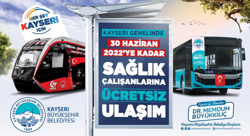 Kayseri Büyükşehir Belediye’sinin fedakârca görev yapan sağlık çalışanlarına sağladığı, ilçeler de dâhil olmak üzere, yılsonunda bitecek olan ücretsiz toplu ulaşım desteği 30 Haziran 2022’ye kadar uzatıldı.