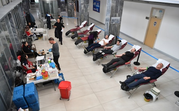 Kayseri Büyükşehir Belediyesi ve Erciyes Üniversitesi (ERÜ) Kan Merkezi iş birliği ile Büyükşehir Belediyesi hizmet binasında başlatılan kan bağışı kampanyasında, Büyükşehir Belediyesi bürokratları ve belediye personeli kan bağışında bulundu.