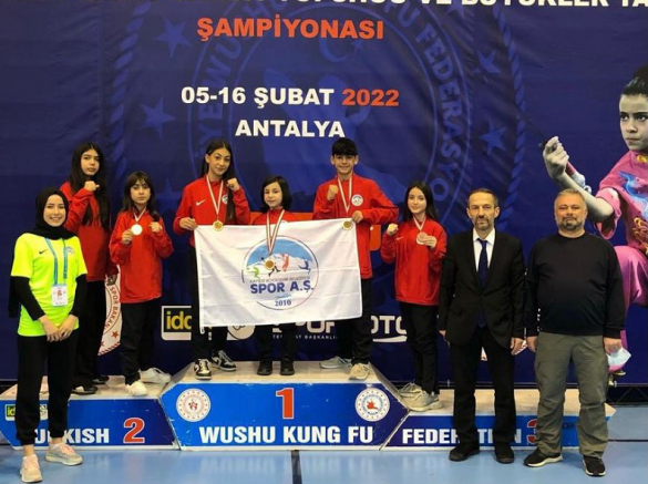 Büyükşehir Belediyesi Spor A.Ş. Gençlik ve Spor Kulübü sporcuları, Antalya’daki Wushu Türkiye Şampiyonası’nda 6 altın, 1 gümüş, 4 bronz madalya kazandı. Buna göre ‘minik bayan 29 kg Light Sanda Elif Ceyda Yalçın 1’inci, yıldız bayan 32 kg Light Sanda Gül Reyhan Doğaner 1’inci, yıldız erkek 41 kg Light Sanda Muhammed Ali Yıldırım 1’inci, yıldız bayan 45 kg Sanda Ecrin Gülay Düzgün 1’inci, yıldız bayan 38 kg Light Sanda Aslıhan Turhan 1’inci ve büyükler 65 kg Light Sanda Buket Kaya 1’inci olarak altın madalya alırken, genç A 52 kg Light Sanda ise Şahabettin Aksu 2’nci gelerek gümüş madalyanın sahibi oldu. Genç A 48 kg Light Sanda da Seher Ertürk 3’üncü, genç B 52 kg Light Sanda Ayşegül Koçer 3’üncü, genç A 56 kg Light Sanda Şura Nur Arı 3’üncü ve genç A 60 kg Light Sanda Mustafa Gökhan Gürbüz de 3’üncülük elde ederek bronz madalya kazandı.