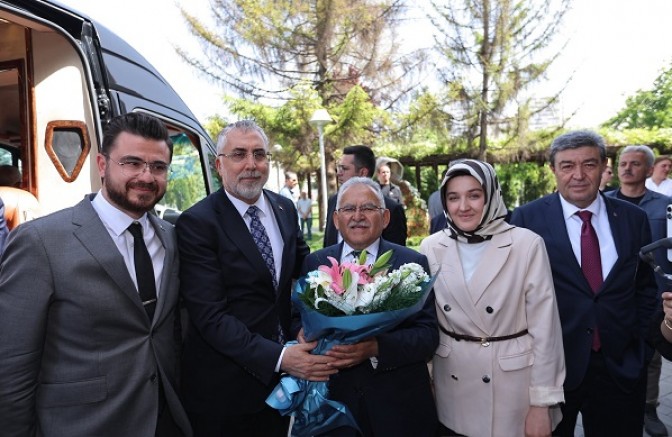 Kayseri’de bulunmaktan ve Başkan Büyükkılıç ile Kayserililerin samimi, güler yüzlü misafirperverliklerinden dolayı memnuniyet duyduğunu ifade ederek teşekkür eden Çalışma ve Sosyal Güvenlik Bakanı Prof. Dr. Vedat Işıkhan, “Gerçekten Ahi Evran’ın şehrinde bulunmaktan dolayı ayrı bir heyecan içerisindeyim ki 38’inci İş Sağlığı ve Güvenliği Haftamızı da Kayseri’de kutlamaktan, başlatmaktan dolayı da büyük bir memnuniyet duyuyorum” şeklinde konuştu.
