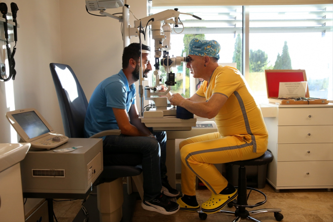 "Eskiden flaşlı fotoğraf makineleri vardı. Fotoğraf çekerdik. İnsanların göz bebekleri kırmızı çıkardı. Aslında o çok güzel bir şey. Yani eğer iki gözde kırmızı olarak yansıyorsa şaşılık yani kabaca katarakt olmadığı anlamına gelir. Eğer bir göz bebeğinde kırmızı var, diğerinde yoksa mesela o olmayan gözde problem olabilir. Bir de kayma var mı yok mu diye basit bir test söyleyebiliriz. Göze ışığı yakıp tuttuğunuz zaman, ışık her iki gözünüzün tam ortasından yansıyorsa bebeğinizde kayma yok demektir. Kenarından yansıyorsa o gözde büyük bir ihtimal kayma vardır."