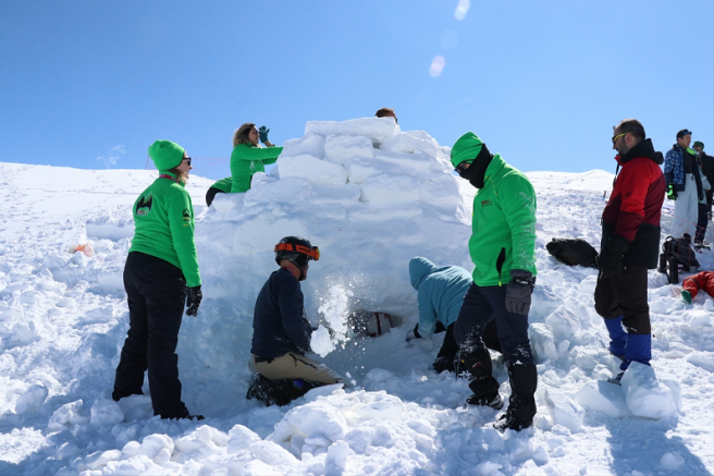 Türkiye Acil Tıp Derneği Doğa Tıbbı (TATDOĞA) Erciyes/Kapadokya Kış Eğitimi kapsamında Erciyes Dağı'nda kamp yapan doktorlar, doğa şartlarında acil müdahale eğitimi alarak, iglo yaptı.