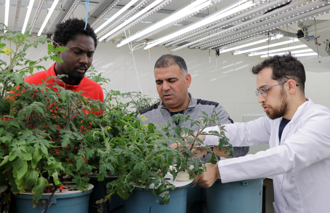 Erciyes Üniversitesi Tarımsal Araştırma ve Uygulama Merkezinde (ERÜTAM) Gana ve Irak'ın yanı sıra Türkiye'nin farklı bölgelerinden toplanmış yöresel domates genotipleri topraksız su kültüründe (hidroponik) yetiştirilerek kuraklığa dayanıklı yeni çeşitlerin ıslah edilmesi için araştırma yapılıyor.