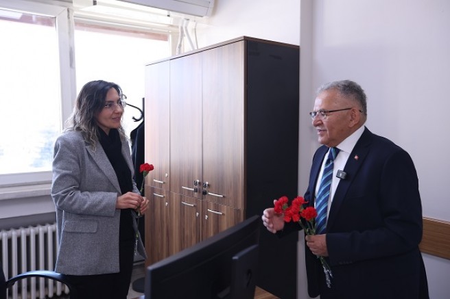 Kayseri Büyükşehir Belediye Başkanı Dr. Memduh Büyükkılıç, 8 Mart Dünya Kadınlar Günü dolayısıyla Büyükşehir Belediyesi’nin kadın personellerini görev yaptıkları birimlerde ziyaret etti ve karanfil ile hediye paketi takdim ederek kadın personellerin Dünya Kadınlar Günü’nü kutladı. Büyükkılıç, AK Parti Kayseri İl Kadın Kolları Başkanlığı’nı da ziyaret ederek İl Kadın Kolları Başkanı Meral Koşar ve kadın Kolları Teşkilatı üyelerinin Dünya Kadınlar Günü’nü tebrik etti.