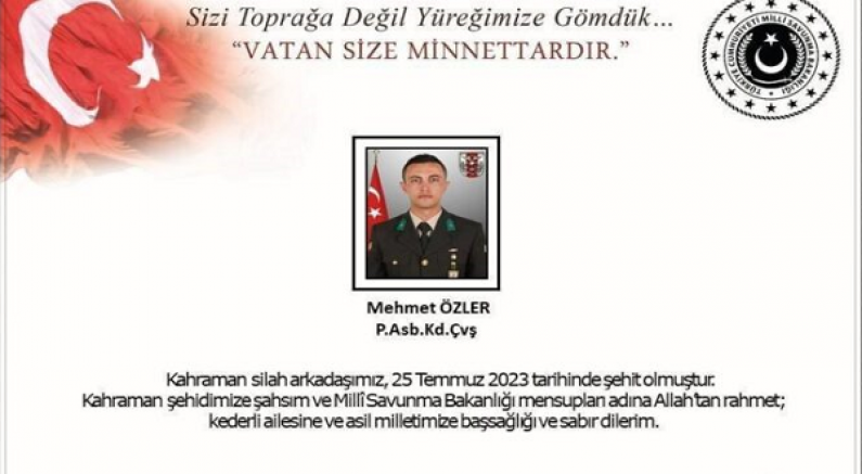 "54'üncü Mekanize Tugay Komutanlığında (Edirne/Süloğlu) görevli Piyade Astsubay Kıdemli Çavuş Mehmet Özler, görevi esnasında askeri araç kazası sonucu yaralanmıştır. Kahraman silah arkadaşımız olay yerinde ilk müdahalenin ardından derhal hastaneye sevk edilmiş, sevk edildiği hastanede yapılan tüm müdahalelere rağmen kurtarılamayarak şehit olmuştur.