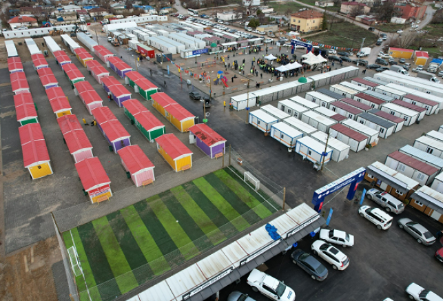 Büyükşehir Belediyesi personelince, yaşam konteynerinde konaklayacak ailelere yardım kolileri de dağıtıldı.