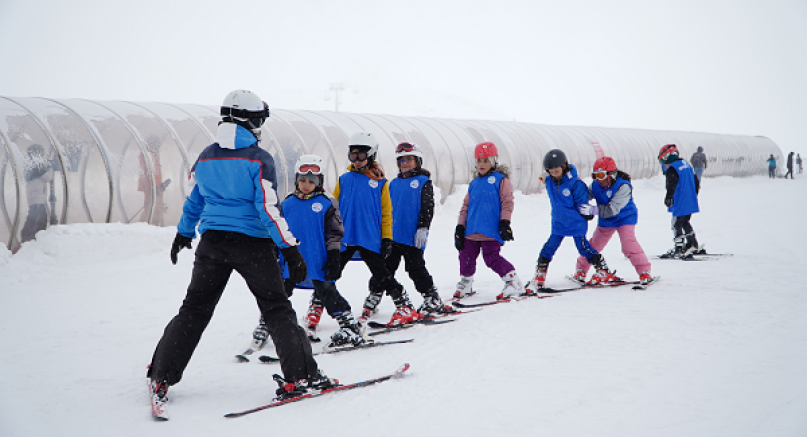 Kayseri Büyükşehir Belediyesi’nin turizmin amiral gemisi Erciyes’te hayata geçirdiği Erciyes Kayak Okulu’nda 7'den 70'e herkesin katılabildiği Kayak ve Snowboard kursları başladı. Erciyes A.Ş. Yönetim Kurulu Başkanı Hamdi Elcuman, “Bugün 200’e yakın kayakseverimiz var, ilk defa öğreniyorlar. En küçüğü 7 yaşında, en büyüğü 53 yaşında, şuanda kayak eğitimine başladılar” dedi.