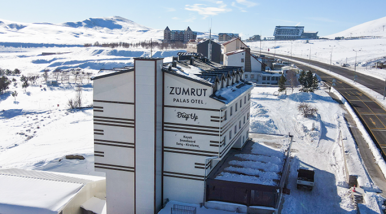 Erciyes’in yeni otellerinden olan Zümrüt Palas Otel de Tekir Kapı bölgesinde kayak severleri ağırlıyor.