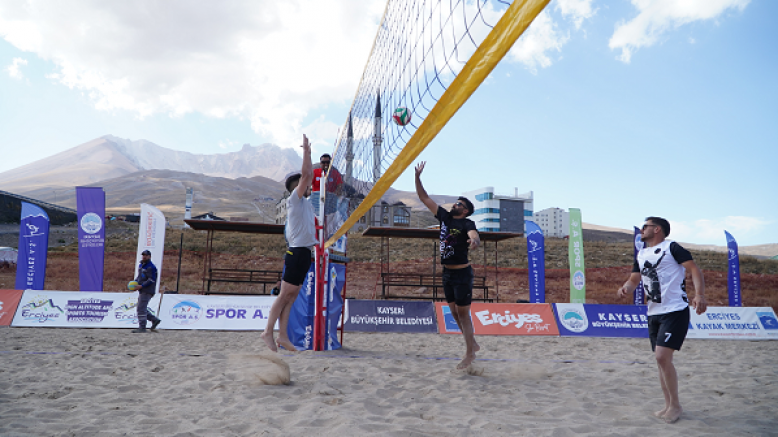 Erciyes Kayak Merkezi Tekir Kapı’da bulunan kum sahalarda ‘takımını oluştur, sen de bu heyecana ortak ol’ sloganı ile düzenlenen turnuva, voleybol tutkunlarını Erciyes’in muhteşem doğasında buluştururken, turnuvada derece elde eden katılımcılara madalya ve kupalarını Erciyes A.Ş. Yönetim Kurulu Başkanı Hamdi Elcuman takdim etti.