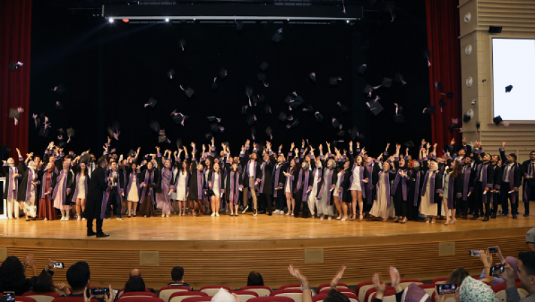 Diş Hekimi Halit Erkiletlioğlu’nun mezun öğrencilere yemin ettirdiği tören, diploma ile plaket takdimi ve öğrencilerin hep birlikte keplerini havaya atmalarıyla son buldu.