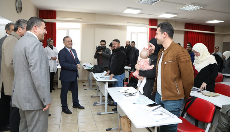 Ziyaretinde ilk olarak Kayseri Valiliği, İl Göç İdaresi ve ERÜ iş birliği ile düzenlenen “Türkçe Öğrenme Seferberliği” kapsamında Türkçe Öğrenimi gören kursiyerler ile bir araya gelen Rektör Altun, kursiyerlere başarılar diledi.