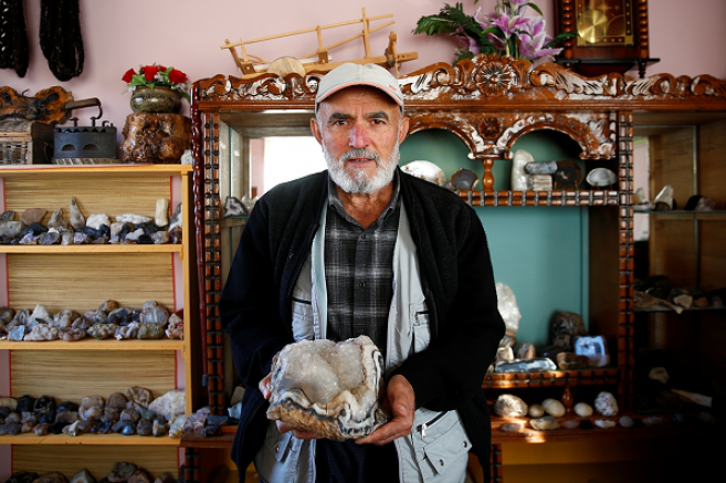 "Ben buraya girdiğimde bugün bulmuş gibi taşlara bakıyorum. Allah Allah diyorum, bunu daha önce görmedim mi acaba. Saatlerim geçiyor böyle tek tek incelersem. Kur'an-ı Kerim meaili okurken de mesela bir sureyi okuyorum, aradan zaman geçtikten sonra tekrar okuduğumda hep değişik geliyor, kazdıkça bir şey çıkıyor gibi. Taş işi de öyle. Bulurken de öyle bakarken de öyle. Oğlum Sedat ile hematit taşı ocağına gittik ramazanda. Sahurdan sonra çıktık, öğlen olmuş farkında değiliz. 'Biz neredeyiz, kaç saattir dolanıyoruz' dedik, acıkma susama hiç yok bu işte."
