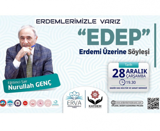 Kayseri Büyükşehir Belediyesi ve Kayseri Valiliği’nin de paydaşı olduğu ‘Erdemlerimizle Varız projesi’ kapsamında “Edep Erdemi” konulu söyleşi düzenleyecek.