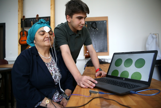 Kayseri'de Mustafa Eminoğlu Anadolu Lisesi 11. sınıf öğrencisi Mehmet Raşit Öztürk, göz bebeği hareketlerini ses ve yazıya dönüştüren sistemle konuşma güçlüğü çeken hastalara destek olmayı hedefliyor.
