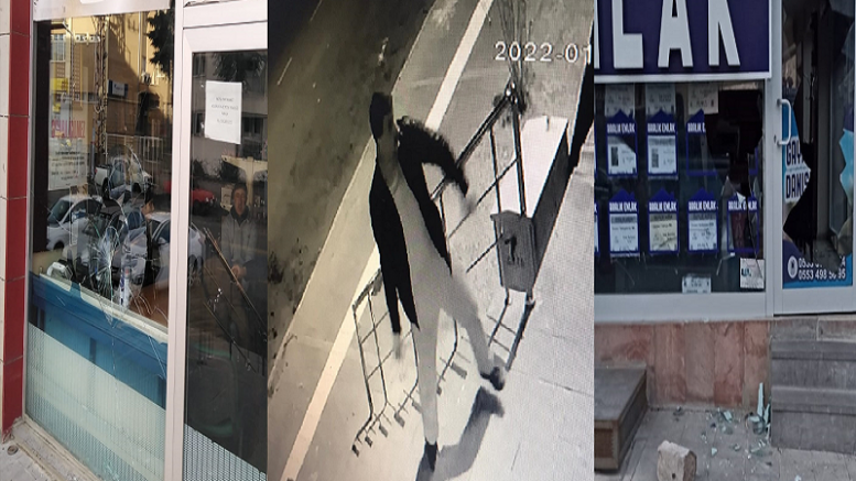İstiklal Caddesi ve Atatürk Bulvarı'nda faaliyet gösteren 5 iş yerinin vitrin camı, gece kimliği henüz belirlenemeyen bir kişi tarafından taş atılarak kırıldı.