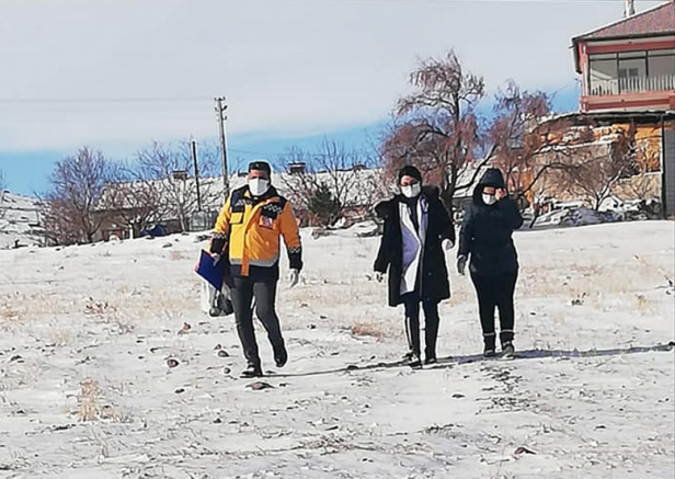Kayseri'nin İncesu ilçesinde Devlet Hastanesi Evde Sağlık Hizmetleri ekipleri, kış koşullarında da çalışmalarını sürdürüyor.