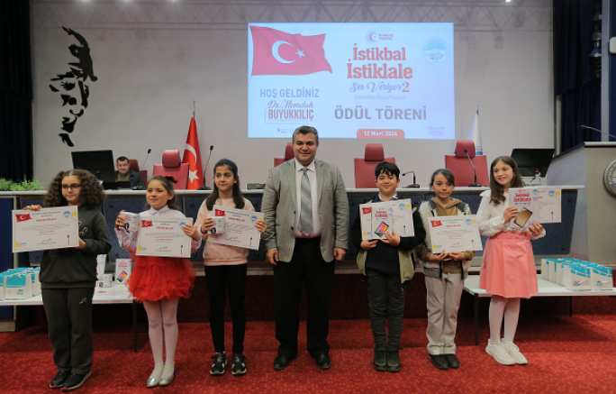 İstiklal Marşı'nın Kabulü ve Mehmet Akif Ersoy'u Anma Günü olan 12 Mart’ta, Büyükşehir Belediyesi Meclis Salonu’nda gerçekleşen ‘İstikbal İstiklale Ses Veriyor 2’ İstiklal Marşı Okuma Yarışması Ödül Töreni’ne Genel Sekreter Yardımcısı ve KAYMEK A.Ş. Yönetim Kurulu Başkanı Serdar Öztürk, İşletme ve İştirakler Daire Başkanı Cenani Ayaydın, KAYMEK Müdürü Denizhan Burhan Çanakpınar ve alanında uzman eğitmenler ile öğrenciler ve aileleri katıldı.