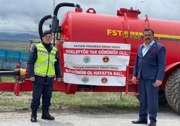 Kayseri'de jandarma ekipleri, traktör kazalarını önlemek amacıyla 200 reflektör dağıttı.