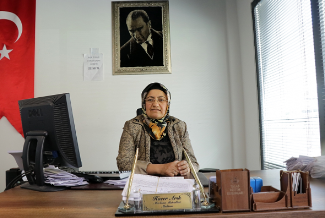 Kayseri'nin Talas ilçesi Mevlana Mahallesi muhtarı Hacer Arık (50), mahallesindeki 87 bin 561 kişiye hizmet etmeye çalışıyor.