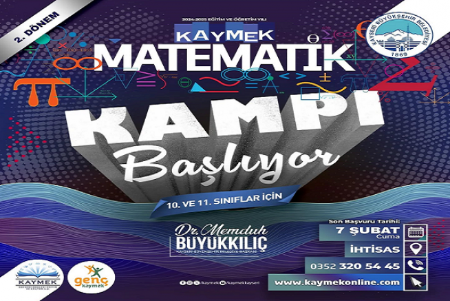 Kayseri Büyükşehir Belediyesi bünyesinde eğitim ve kültür sanat faaliyetlerini etkin bir şekilde yürüten KAYMEK A.Ş. tarafından, öğrencilerin matematiğe karşı ilgi duymalarını sağlamak ve motivasyonlarını arttırmak amacıyla düzenlenecek Matematik Kampı’nın 2’nci Dönem kayıtları başladı.