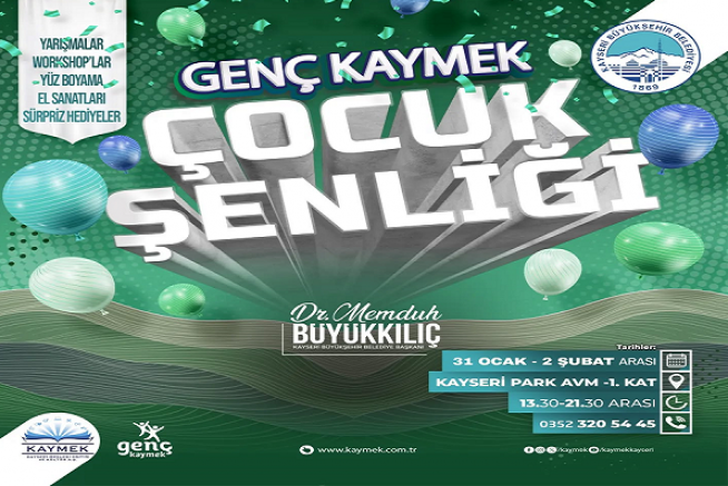 Kayseri Büyükşehir Belediyesi bünyesinde faaliyet gösteren KAYMEK, 2024-2025 Eğitim Öğretim Yılı yarıyıl tatiline özel etkinliklerine hız kesmeden devam ediyor. Yarıyıl tatilinin en eğlenceli etkinliği olacak Genç KAYMEK Çocuk Şenliği, 31 Ocak’ta başlıyor.