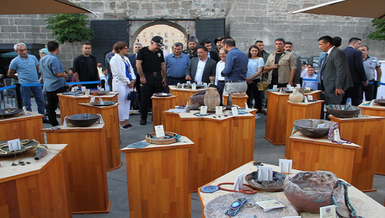 Vali Çiçek, Büyükşehir Belediye Başkanı Büyükkılıç ile Kültür ve Turizm Bakanlığı Halk Kültürü Dairesi Başkanı Erkmen, tarihi Kayseri Kalesi'nde açılan stantları gezerek, sanatçılardan çalışmaları hakkında bilgi aldı.