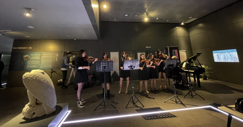 Öğrenciler müzenin Roma Salonu'nun tarihi atmosferinde hem solo hem de orkestra halinde piyano ve keman resitali sundu.