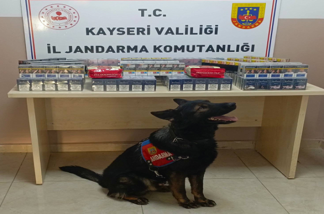 Kayseri Jandarma Komutanlığı ekipleri çay ve tütün tespit köpeği ile yaptığı operasyonda 1000 paket kaçak sigara ele geçirdi.