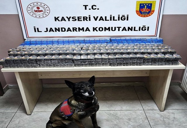 Valilikten yapılan açıklamada''Kayseri-Malatya karayolu Solaklar Mahallesi'nde 21.04.2026 günü Kayseri İl J.K.lığı KOM Şb.Md.lüğü ve Pınarbaşı İlçe J.K.lığınca icra edilen Yol Kontrol Devriyesi esnasında, kimlik sorgusı için durdurulan 2 ayrı tıra Çay ve Tütün tespit köpeğinin tepki vermesi sonucu toplam 1008 paket bandrolsüz sigara ele geçirilmiştir.'' ifadeleri yer aldı.