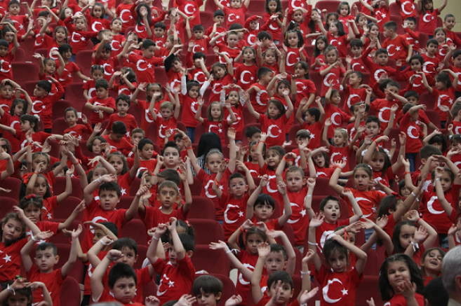Kayseri'de okul öncesi 1200 öğrencinin, öğretmenleri eşliğinde 29 Ekim Cumhuriyet Bayramı için şarkı seslendirdiği görüntülerden klip hazırlanacak.