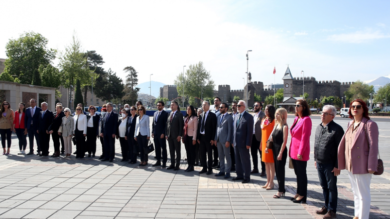 Kayseri Eczacı Odası Başkanı Uğur Nuri Akın ile yönetim kurulu üyeleri, Erciyes Üniversitesi Eczacılık Fakültesi Dekanı Prof. Dr. Mükerrem Betül Aycan, Cumhuriyet Meydanı'nda düzenlenen törende Atatürk Anıtı'na çelenk sundu, saygı duruşunda bulunuldu ve İstiklal Marşı okundu.