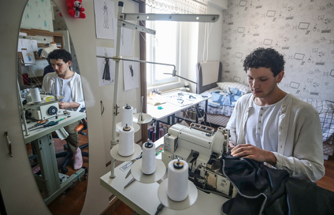 Kayseri'de, merak saldığı dikişi kendi kendine öğrenen 19 yaşındaki Salih Buğra Keskin, atölyeye çevirdiği odasında farklı ülkelerden gelen talepler üzerine kişiye özel tasarımlar hazırlıyor.