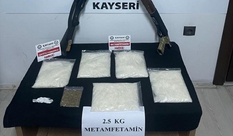 Kayseri'de düzenlenen operasyonda yaklaşık 2,5 kilogram sentetik uyuşturucu ele geçirildi, 2 zanlı gözaltına alındı.