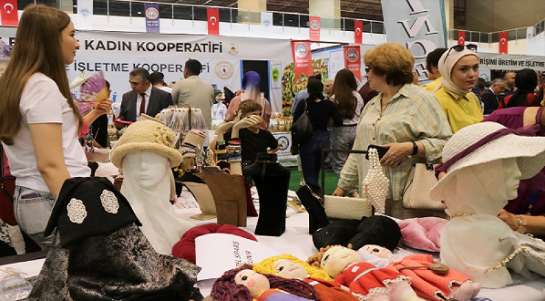 Fuarda, kadın kooperatiflerinin ürettiği yemekler, hamur işleri, çantalar, kıyafetler, el örgüleri, hediyelik eşyalar gibi ürünler yer alıyor.